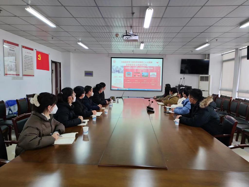 本网讯 1月4日下午,省委宣讲团成员、省级师生巡讲团成员、党的二十大代表、安徽大学党委书记、教授蔡敬民通过网络直播的方式向合肥高校宣讲党的二十大精神。辅导员协会积极响应,第一时间组织全体辅导员,通过集中收看和自行观看相结合的方式在线观看宣讲报告。