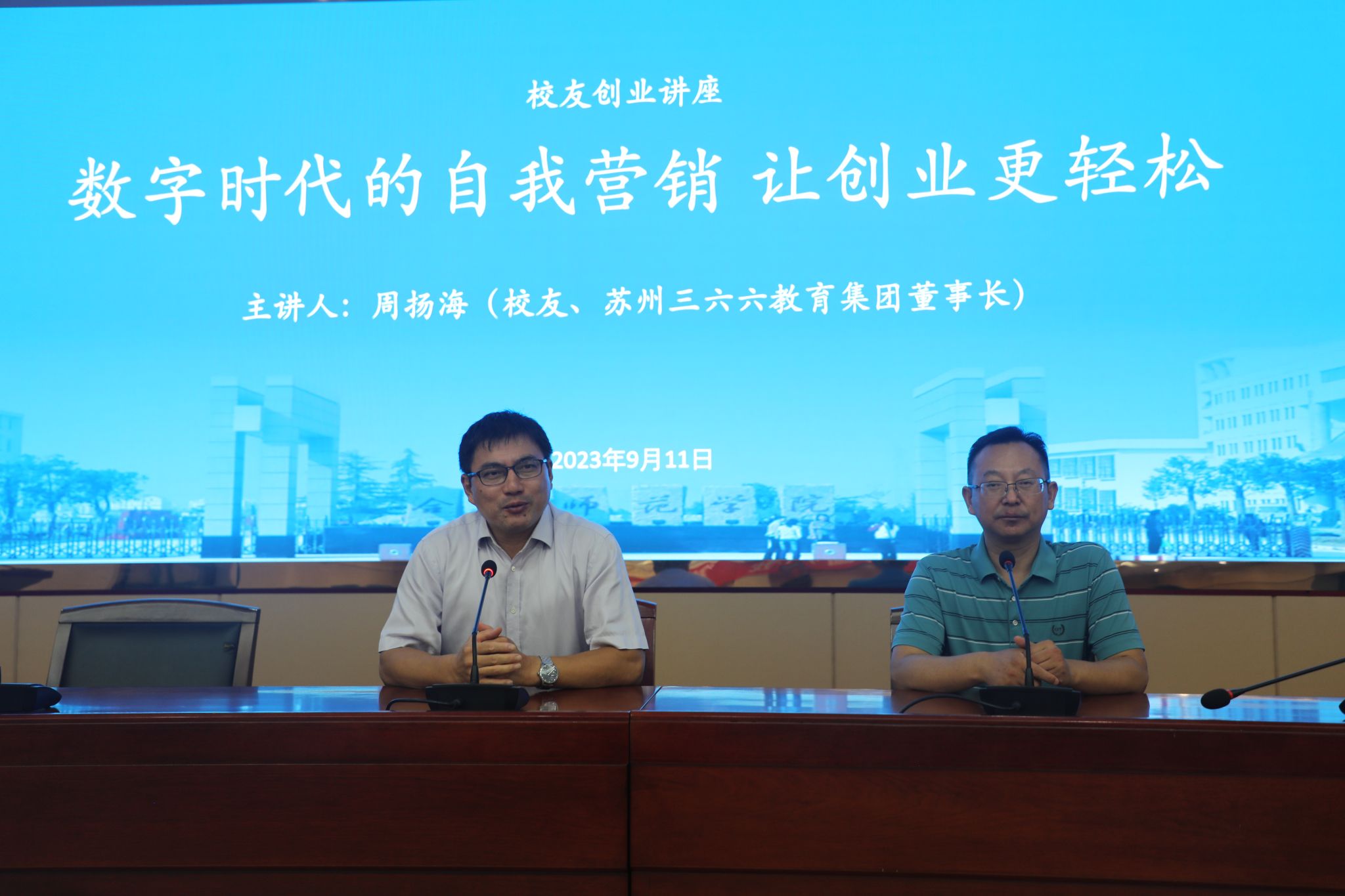本网讯 为进一步营造浓厚的就业创业氛围,增强就业创业意识,引导学生树立正确的择业观与就业观,9月11日,学院邀请英语专业校友、三六六教育集团董事长周扬海回校作创业讲座。