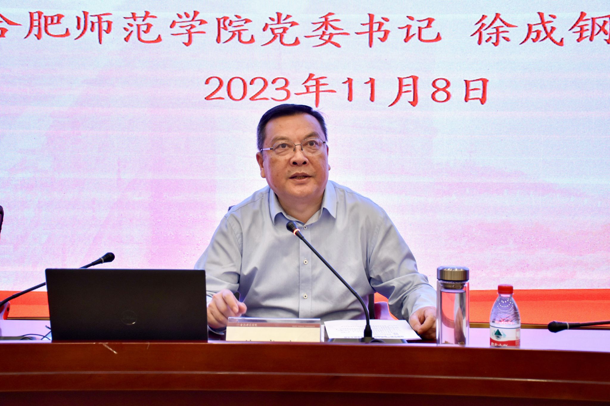 11月8日下午,院党委书记、中国陶行知研究会副会长、安徽陶行知研究会会长徐成钢教授为十四期青年马克思主义者培养工程、第四期青春学习营作题为“学习贯彻习近平文化思想、扎实推进校园文化建设”的首场专题报告。相关二级学院党团负责人、辅导员,学生工作部、团委全体人员,青马工程和青春学习营全体学员300余人聆听报告。
