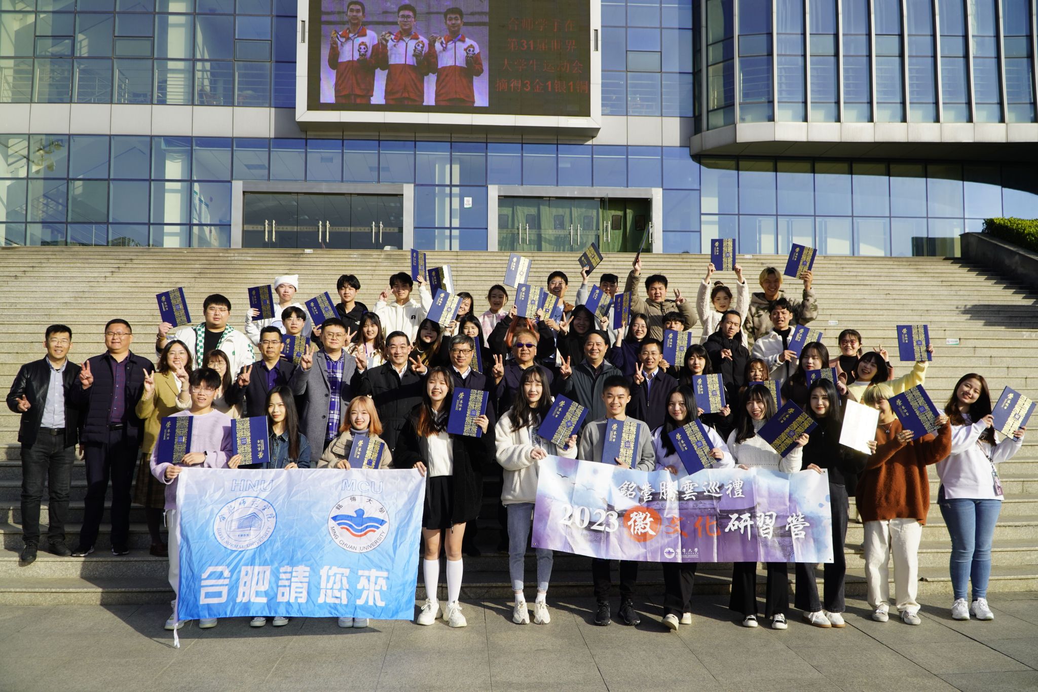 仪式后,参与结营式的领导、嘉宾和营员在beat365唯一官方网站图书馆门口合影留念。所有营员举行了结营联谊交流会,参观了beat365唯一官方网站校史馆和学陶馆。“合肥请您来”2023台湾大学生“徽文化”研学营圆满结营。(港澳台事务办公室)