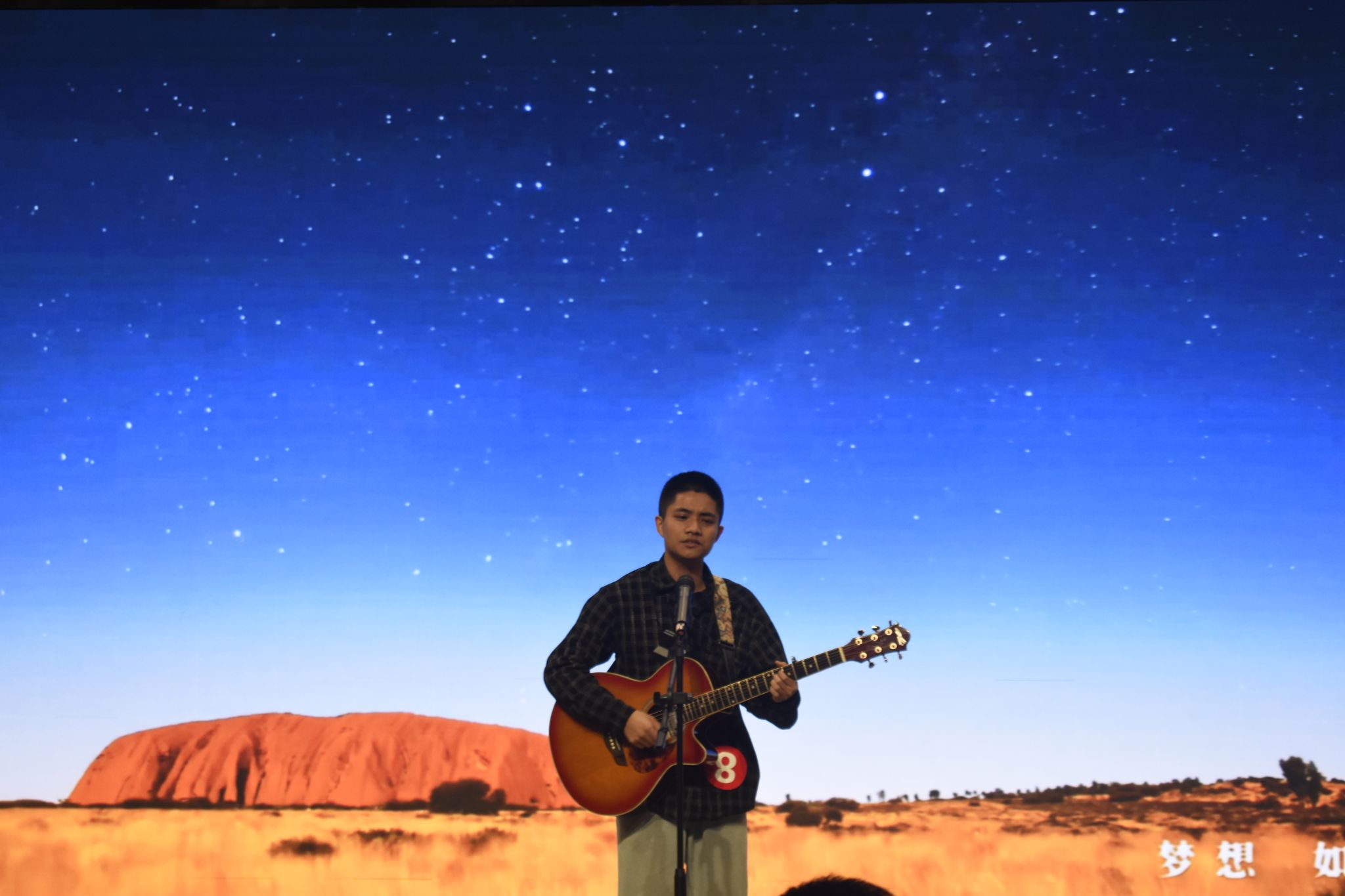 比赛进入尾声,第二十一届十佳歌手大赛冠军刘睿杰深情献唱《情话Love words》,动听的歌声弥漫全场。最后,由18位选手共同演唱《我们都是追梦人》,交织的旋律谱写着美好的青春。