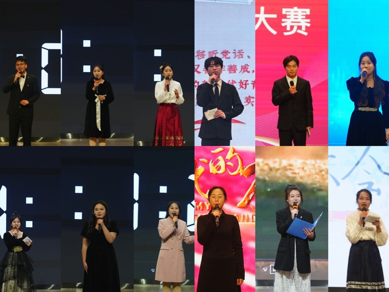 经过层层角逐,最终有12名选手成功进入决赛。本次决赛由“崭露头角、“斗丽争妍、“应对有方三个部分组成。“崭露头角部分由选手单人主持,“斗丽争妍由两位选手组合主持、“应对有方由晋级选手现场抽取题目即兴主持。