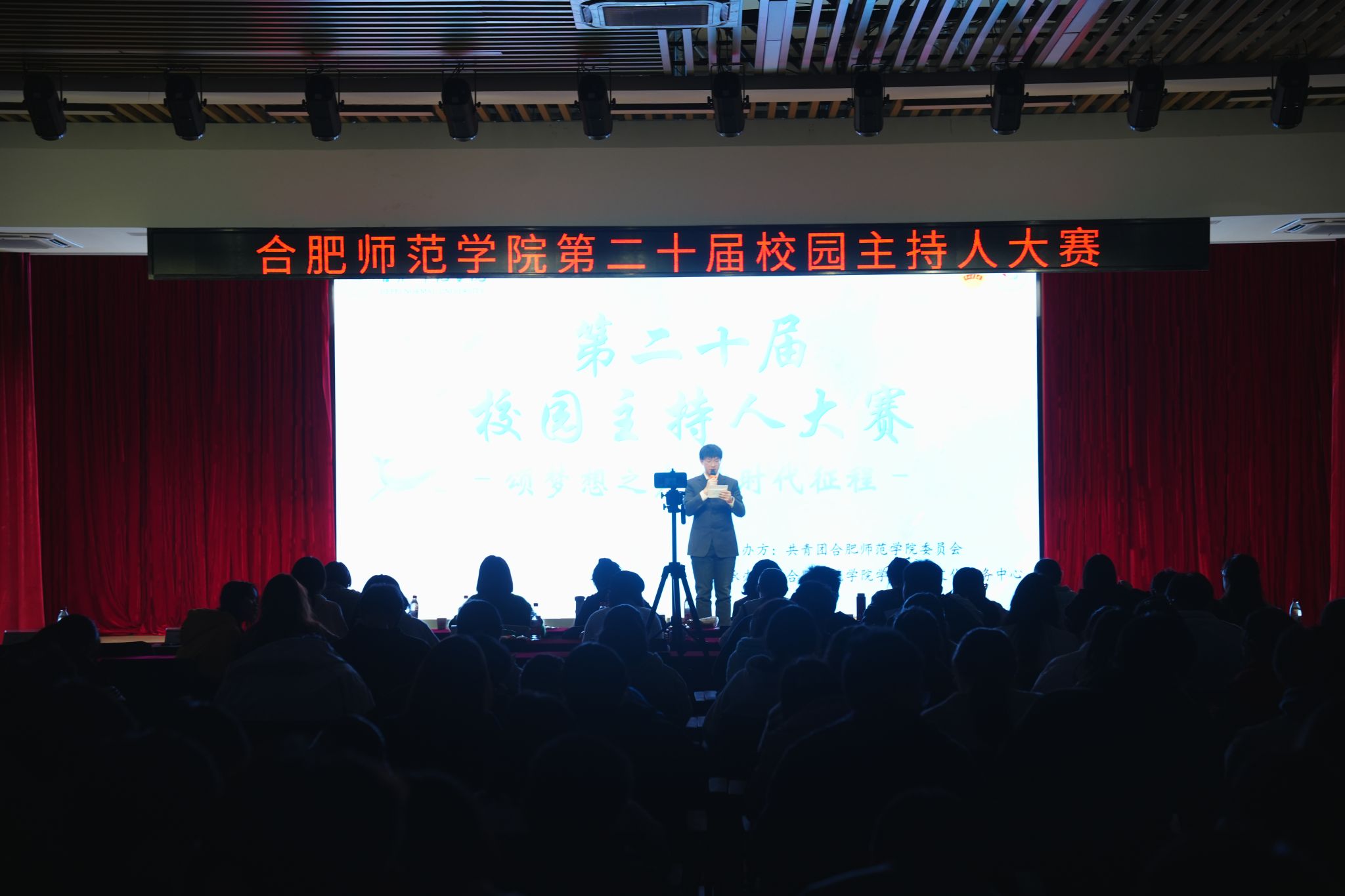 12月6日晚,由院团委主办,学生社团文化服务中心承办的“颂梦想之声,赞时代征程”第二十届校园主持人大赛决赛于锦绣校区大学生活动中心顺利举行。院团委、各二级学院团委负责人和400余名学生到场观看比赛,文学院、音乐学院、美术与设计学院、党政办公室、学生工作处等单位专业老师担任评委。