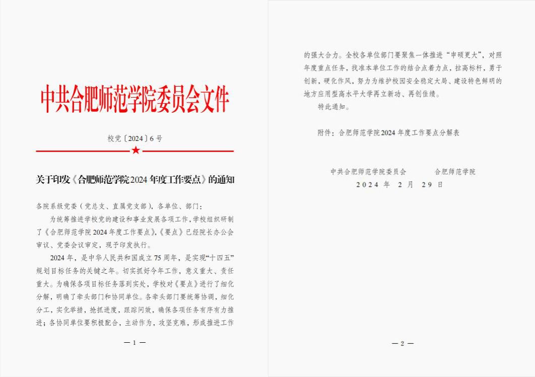 《beat365唯一官方网站2024年度工作要点》(校党〔2024〕6号)