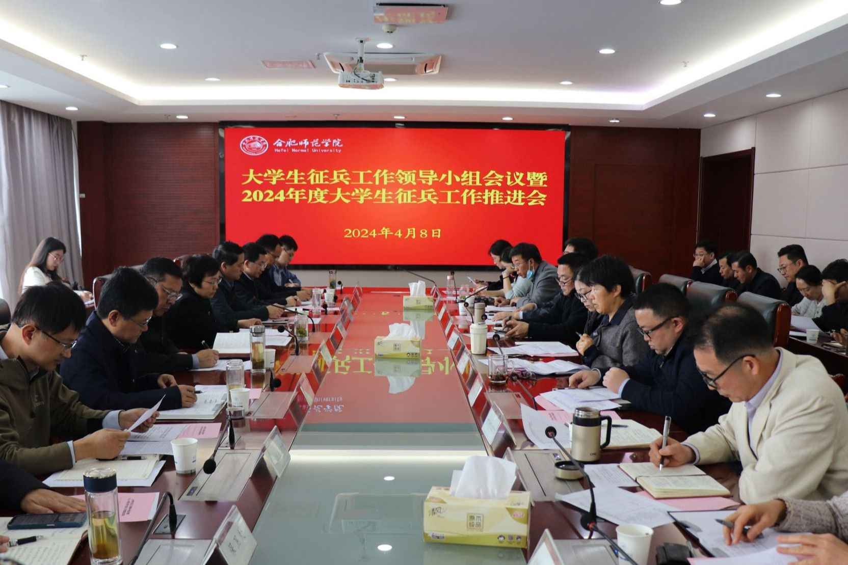 4月8日上午,学院大学生征兵工作领导小组会议暨2024年度大学生征兵工作推进会在锦绣校区行知楼召开。院党委书记徐成钢出席会议并讲话,院党委副书记梁立昌主持会议,学院大学生征兵工作领导小组全体成员、各二级学院党委副书记及毕业班辅导员参加会议。