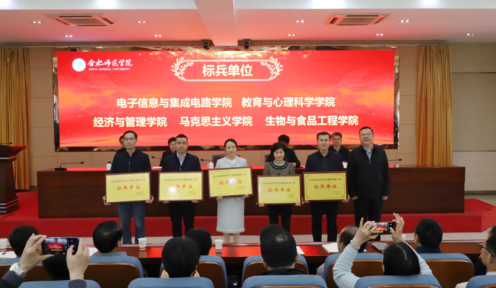 徐成钢、方东玲、梁立昌、华银峰、周端明等院领导分别向“标兵单位”代表、“先进个人”“任务完成奖”单位代表、“‘双创’教育奖”单位代表、“继续深造率奖”单位代表颁奖。
