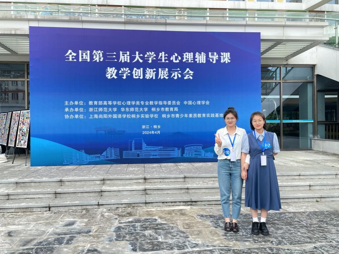 4月25日至26日,由教育部高等学校心理学类专业教学指导委员会、中国心理学会主办,浙江师范大学、华东师范大学、桐乡市教育局承办的全国第三届大学生心理辅导课教学创新展示会在浙江桐乡举行,教育与心理科学学院2021级本科生梁文婷、2022级本科生杨芊然凭借出色的表现双双斩获全国二等奖。