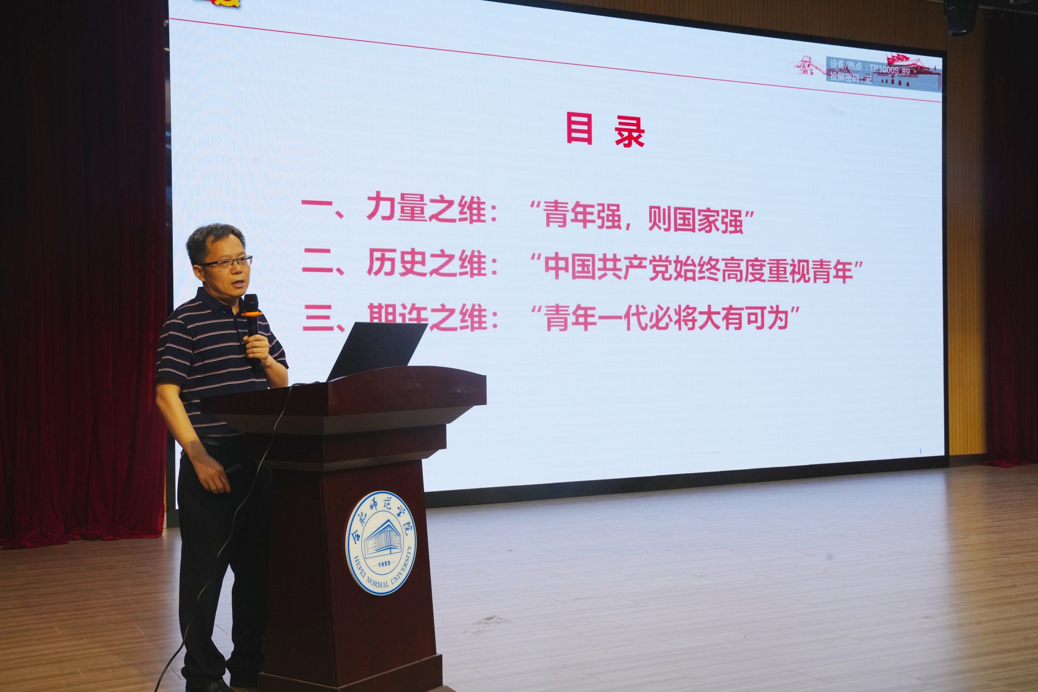 本次青春思政课主题鲜明,从理论引领的新航向到创新创业的新征程,从乡村振兴的艰难历程到绿色发展的青春助力,从社会服务的尽心竭力到卫国戍边的满腔热血,引导合师青年更加清醒地认识到“民族复兴、强国建设”的使命在肩,当更加坚定地树立“请党放心、强国有我”的报国之志,号召广大青年要接过时代的接力棒,踔厉奋发,施展才干,让青春在中国式现代化新征程中书写挺膺担当的华彩篇章。(院团委:李梦媛、高思雨/文 焦心怡/图)