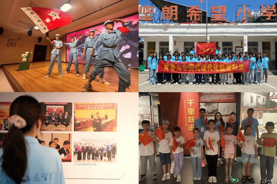 此外,同学们结合“返家乡”“三下乡”社会实践活动,积极开展了理论宣讲、重走“红色之路”等实践活动。全国重点团队习近平新时代中国特色社会主义思想宣传团深入“行知学堂”场所,结合《习近平与大学生朋友们》第二卷理论资料,面向全省500余名青少年群众开展党的二十届三中全会精神宣讲。乡村振兴促进团深入学习贯彻习近平总书记给中国农业大学科技小院学生重要回信精神,赴肥西县上派镇前进村向村民和青少年群众宣讲乡村全面振兴战略及农业现代化建设举措。“粮食安全守护者”实践团赴广德市,开展“践行大食物观,保障粮食安全”主题宣讲活动,呼吁市民关注粮食安全、主动节约粮食。“两弹一星”精神宣讲团深入合肥市科技馆,向青少年讲述党领导下的核工业发展史和科学家精神内涵。魏玉能同学联合颍上县润河镇五里村村委会,组织村民群众观看红色影片,并开展《中国共产党为何要为人民服务 怎样为人民服务》主题微宣讲。李思捷团队同学践行“绿水青山就是金山银山”理念,赴灵宝市大王镇北营村,对三门峡黄河滩进行垃圾清理并开展绿色生态主题宣讲。伊巴代提古丽·阿布都热合曼同学参加喀什市阿瓦提21村红领巾小课堂活动,举办“铸牢中华民族共同体意识,踔厉奋发新征程”主题演讲比赛、主题宣讲活动。