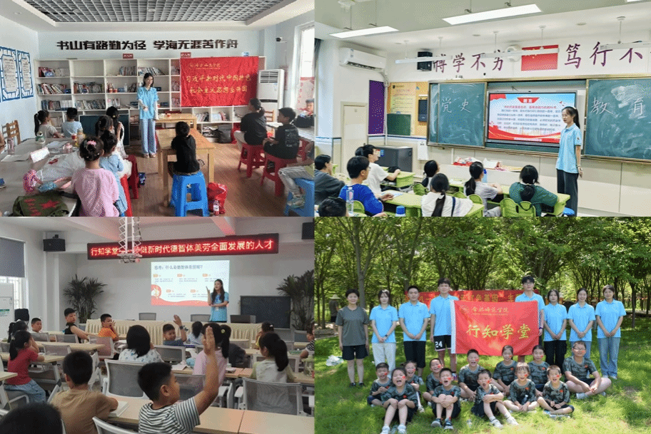 天长市浔河社区行知学堂开展“新时代传承弘扬 ‘嘉庚精神’”主题活动,向小学员们讲述《习近平与大学生朋友们》第二卷相关篇目。合肥市包河区卫塘行知学堂在建军节前夕,开展“共庆建军节,传承爱国情”主题活动,运用历史文稿、影视案例、故事讲解等形式,宣讲党史国史、英烈事迹。广德市行知学堂开展“探寻红色文化,传承革命精神”活动,“小先生”和小学员们赴广德市英烈山纪念馆和月克冲纪念馆,共同缅怀革命先烈,追寻红色记忆。六安市叶集区知育行知学堂由不同学科的师范生组成,依托师范专业背景向小学员们宣讲教育家精神。合肥市蜀山区“长夏乐学”行知学堂开展“人工智能科技”系列讲堂活动,以高新科技产品活跃课堂氛围,帮助“小先生”和小学员理解新质生产力理论。江西省上饶市鄱阳县青春有我行知学堂开展红色观影系列活动,从革命历史、英雄故事、社会风尚等角度,引导小学员培育和践行社会主义核心价值观。合肥市包河区迎淮社区行知学堂以“诗词里的文物”为主题,宣讲红色教育知识和传统诗词文化,引导小学员从古诗词和传统哲学中领悟新时代好少年的深刻内涵。合肥市蜀山区芳庭行知学堂开展“文物保护”专题活动,小学员们在认识文物、鉴赏文物中了解文物背后的历史故事、制作工艺,感叹中华传统工艺和古代历史的独特魅力。马鞍山含山煦童行知学堂聚焦传承中华优秀传统文化,将戏曲京剧头饰制作、漆画扇制作、京剧脸谱绘制、手绘青花瓷纸盘纳入课程体系,打造“中华传统工艺”学堂。萧县皖智前程行知学堂开展教育家精神、行知精神、井冈山精神和长征精神宣讲,并教小学员歌唱红歌。南陵县烟墩镇行知学堂开展“回溯历史”活动,带领小学员以情景重现的形式还原地方革命故事、红色历史,从中汲取成长力量。蚌埠市朝阳行知学堂邀请 “中国好人”赵继军同志为小学员讲述自身事迹,传播道德力量。
