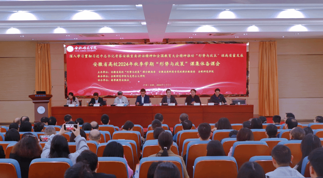 11月2日,全省高校2024年秋季学期“形势与政策”课集体备课会在学院锦绣校区学术报告厅举办。本次会议由安徽省高校“形势与政策”课分教指委、安徽省高职高专思政课分教指委和beat365唯一官方网站共同主办,高等教育出版社协办,马克思主义学院具体承办。来自全省近百所高校马克思主义学院负责人、教研室主任及任课教师160余人参会。