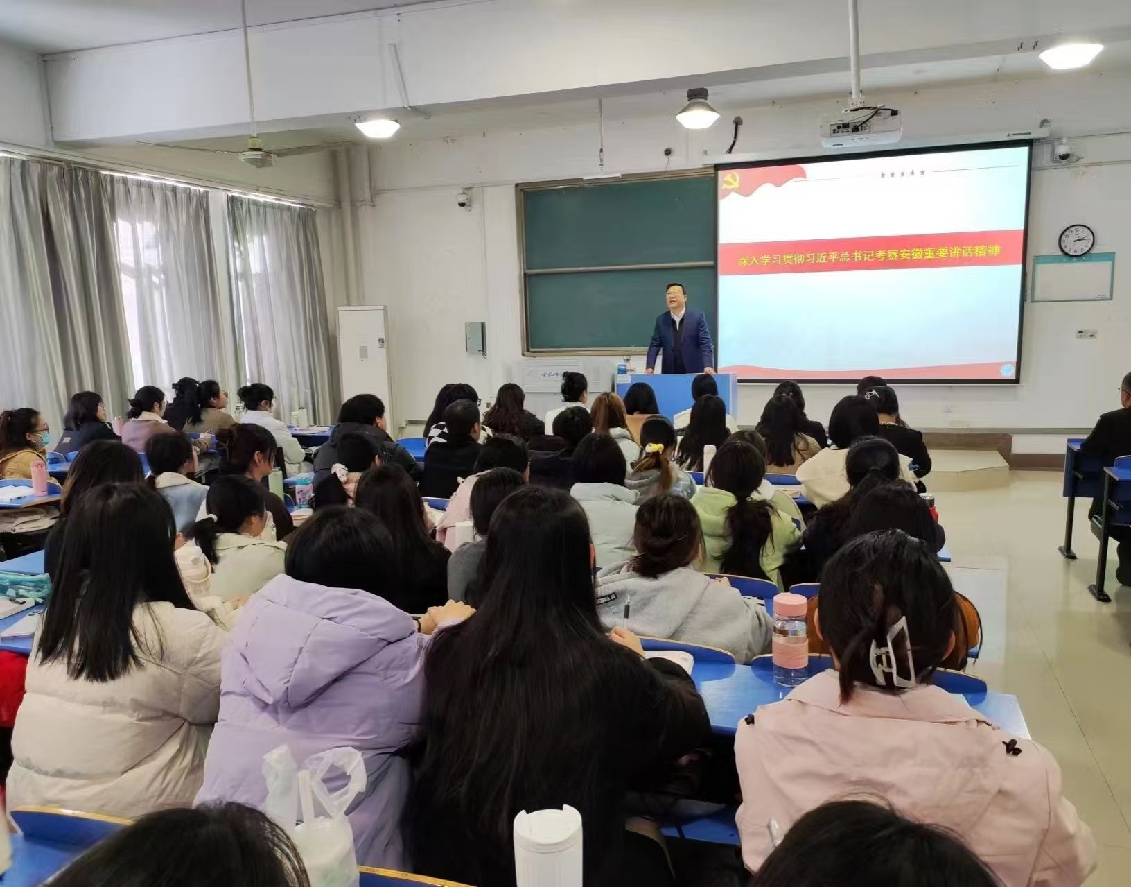 为深入学习宣传贯彻习近平总书记考察安徽重要讲话精神,认真落实“领导干部上思政课”工作要求,11月21日上午、11月29日下午,院党委书记徐成钢分别走进本科生和研究生思政课堂,结合讲授《习近平新时代中国特色社会主义思想概论》内容,为同学们宣讲习近平总书记考察安徽重要讲话精神,推动习近平总书记重要讲话精神在青年学生中入脑入心。