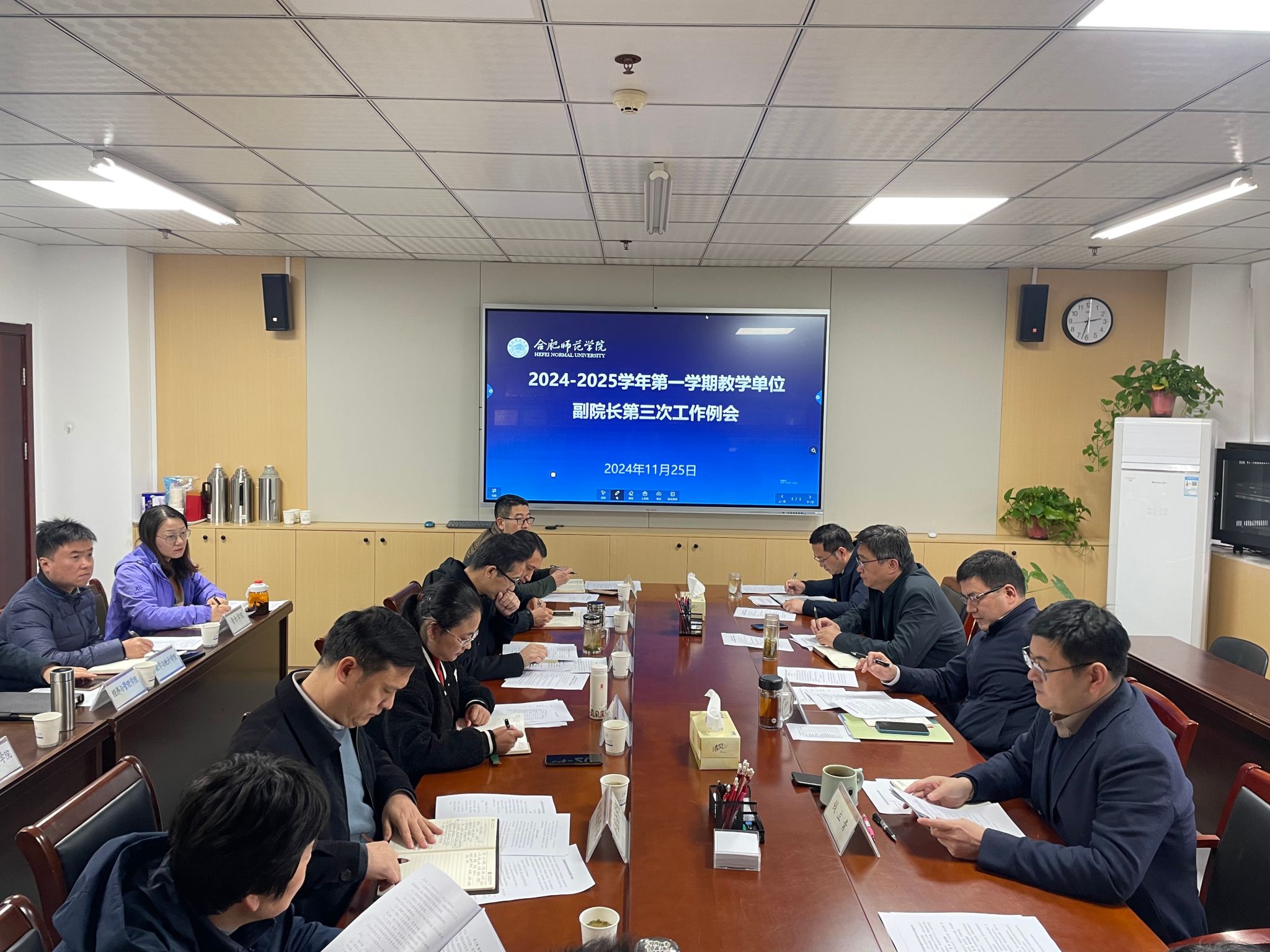 11月25日下午,学院在锦绣校区行知楼408会议室召开本学期第三次教学单位副院长工作例会。党委委员、副院长周端明出席会议。各二级学院副院长,教务处负责人及相关工作人员参加会议。会议由教务处负责人主持。