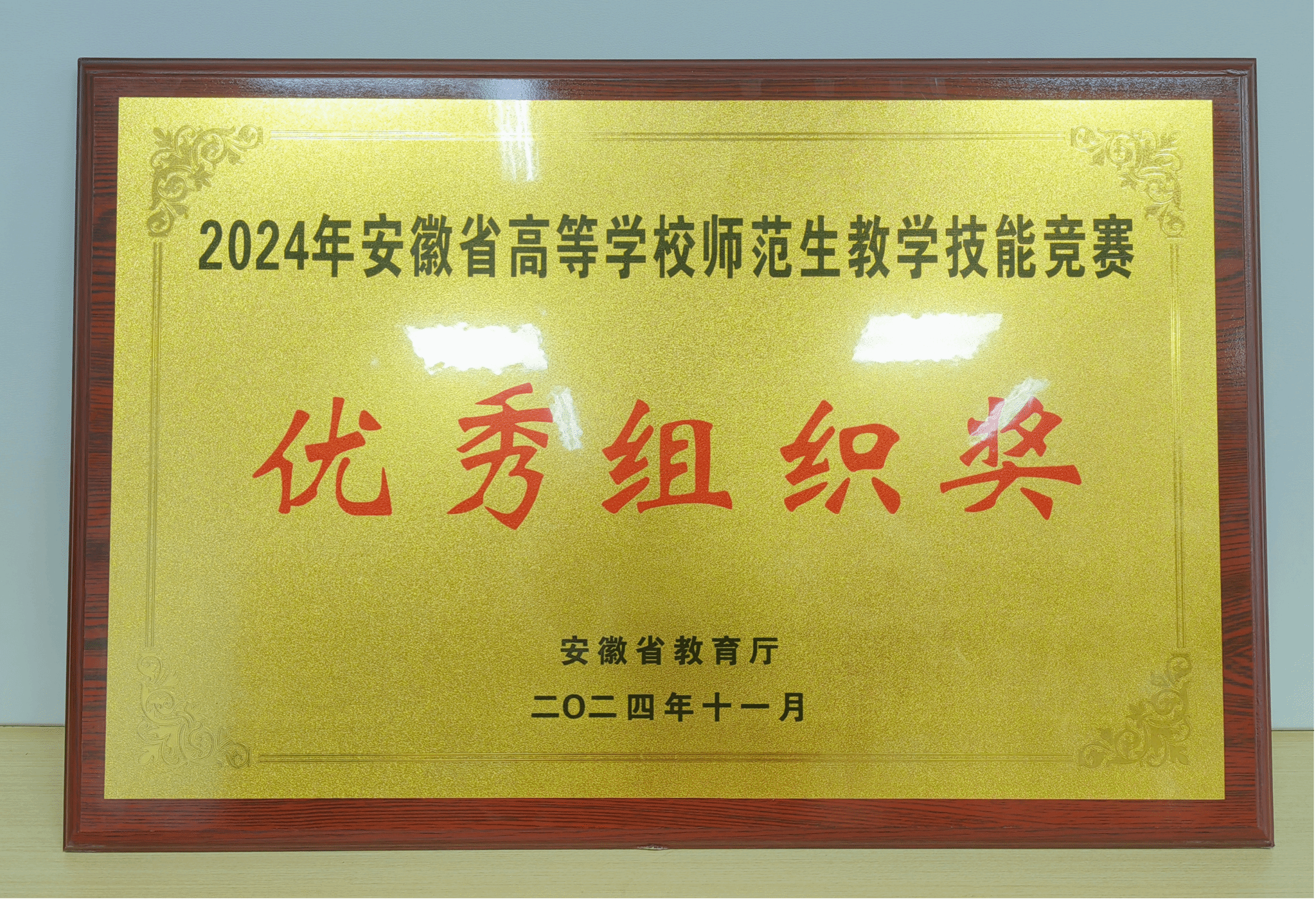近日获悉,我校在2024年安徽省高等学校师范生教学技能竞赛、第六届长三角师范生教学基本功大赛和2024年安徽省本科师范院校教师智慧教学大赛中获优秀组织奖。