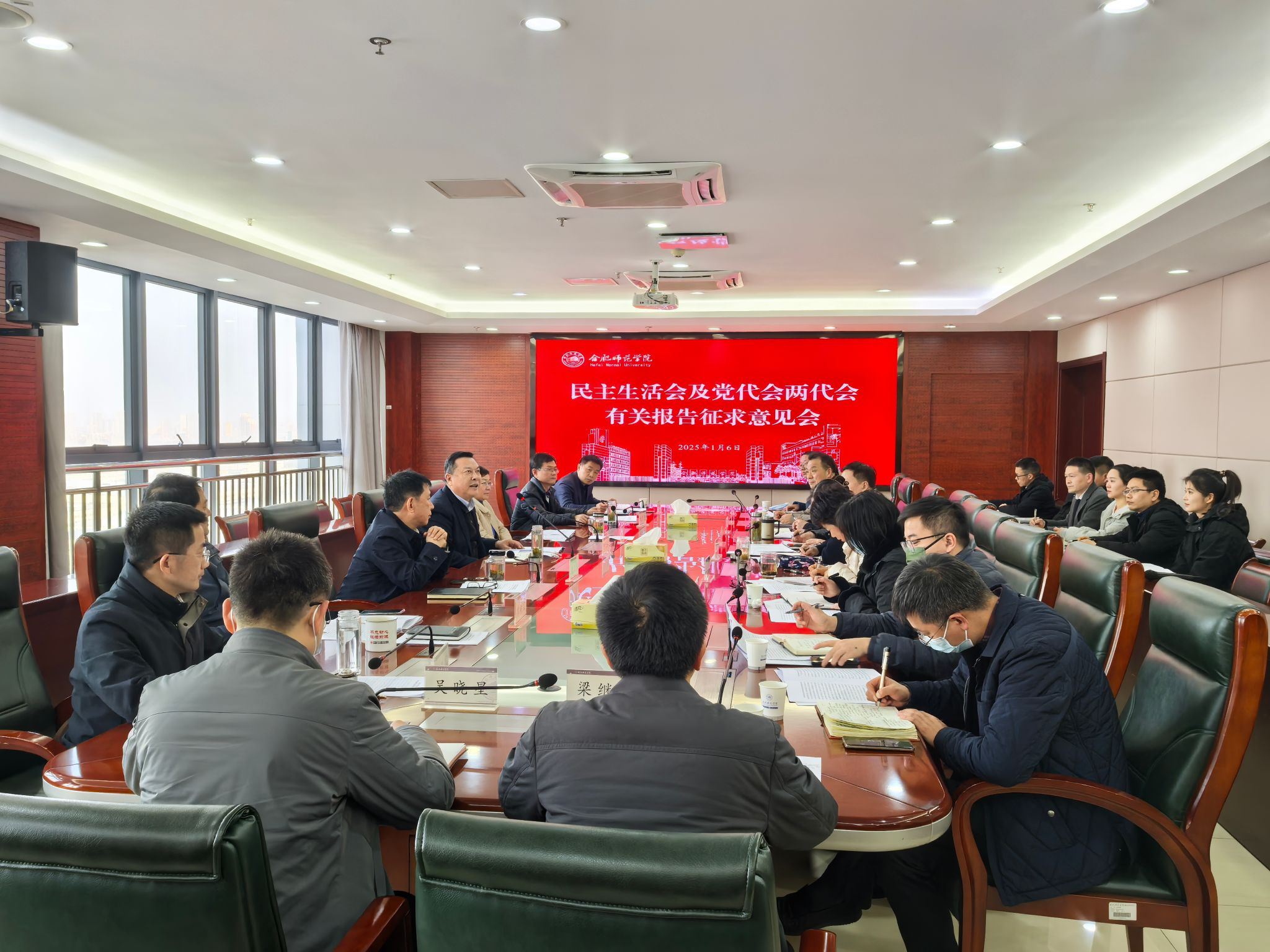 为深入学习贯彻党的二十届三中全会、全国教育大会和习近平总书记考察安徽重要讲话精神,充分发扬民主,凝聚智慧力量,高质量开好学院党委班子民主生活会和第三次党代会2024年年会、八届二次教代会工代会,学院组织多形式多层面征求师生意见建议。1月6日至7日,学院召开2场征求意见会,院党委书记徐成钢,党委副书记、院长方东玲分别出席会议并讲话;党委副书记梁立昌,党委委员、副院长华银峰分别主持会议;党委委员、纪委书记、监察专员徐文林,党委委员、副院长周端明,党委委员赵帮恚、常树宝出席会议。各单位负责人、师生、民主党派及无党派人士等代表参会。