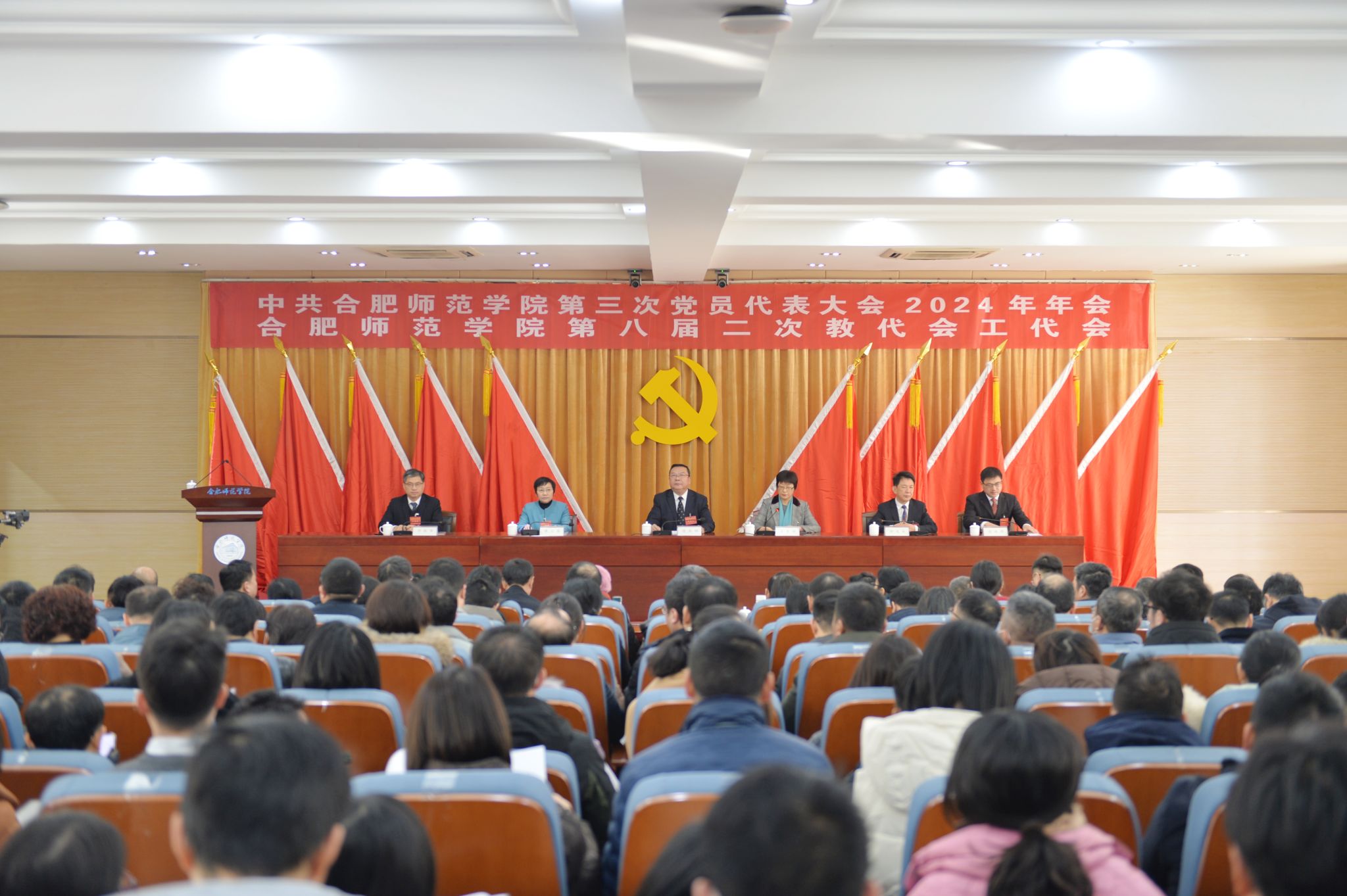 在雄壮的《国际歌》声中,中共beat365唯一官方网站第三次党员代表大会2024年年会和beat365唯一官方网站第八届二次教代会工代会胜利闭幕。