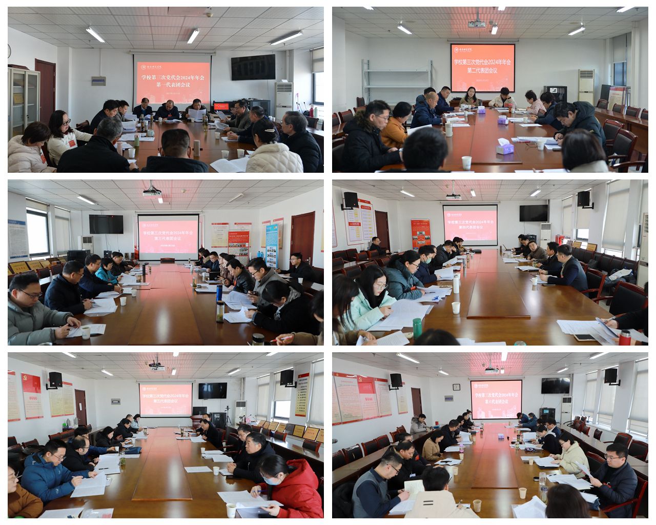 第一次全体会议后,与会代表分12个代表团,以高度的使命感和责任感,认真履行代表职责,正确行使民主权利,先后讨论并审议了学院《党政工作报告》《纪委工作报告》《2024年党费收缴、使用和管理情况的报告》《第八届二次教代会工会工作报告》《财务工作报告》《教代会工代会提案工作报告》《关于进一步深化绩效分配改革的补充意见(试行)》等,积极为学院的改革发展建言献策。下午16时,大会举行主席团会议,听取了代表团讨论情况汇报,并就《党政工作报告》《纪委工作报告》决议草案进行了审议。