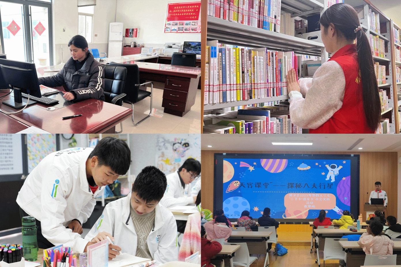 化学与制药工程学院吴越赴望江县,利用专业知识为社区留守儿童开展寒假作业辅导活动,通过形式多样的辅导课程和游戏互动,帮助留守儿童解决学习困难。教育与心理科学学院阿依提玛尔·艾山吐尔向新疆克州阿合奇县哈拉奇乡阿合奇村村委会报到,参与举办阿合奇村“村晚”,在文化艺术活动中弘扬民间艺术和少数民族文化。物理与材料工程学院梁晓燕赴企汇融企业管理有限公司参加企业实践,参与产品研发、市场调研、员工培训等工作。马克思主义学院朱紫玉向霍山县教师学习资源中心报到,负责表格制作、公众号文章编撰、继续教育宣传等工作。美术与设计学院杨冰悦参加阜阳市青舟学堂寒假公益托管班实践活动,发挥专业特长,组织儿童在绘画课用画笔勾勒梦想,在手工课发挥创意,将材料变成精美作品。数学与统计学院汤子豪向阜阳市图书馆报到,参与文明阅读劝导活动,协助读者借阅、查找书刊、解答读者疑问,参与阅览室、书库的日常辅助管理、分类排序、上架、理架等工作。体育科学学院王怡淳参加晋中市榆次区“志愿兴榆”志愿服务活动,负责“市民之家”群众办事引导、政策讲解等工作。文学院张六军赴共青团库尔勒市委员会进行政务实践锻炼,负责新闻稿件写作、活动视频摄制、返乡大学生活动策划等工作。