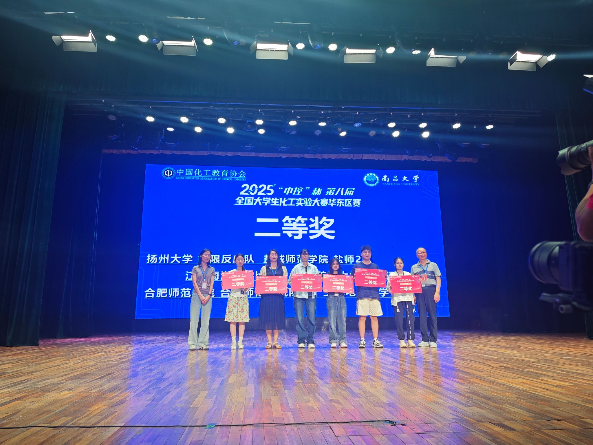 近日,由中国化工教育协会主办、南昌大学承办的“中控”杯第八届全国大学生化工实验大赛华东区赛落幕。华东地区66所高校的优秀学子同台竞技,展开激烈角逐。我校化学与制药工程学院选派的代表队凭借扎实的专业功底、出色的实践能力和稳定的临场发挥,在137支参赛队伍中跻身前56名。潘静芸、刘佳俊、祁语欣3位同学在林静、李娜等教师的指导下获华东区赛二等奖,创下学校在该赛事中的最佳战绩。