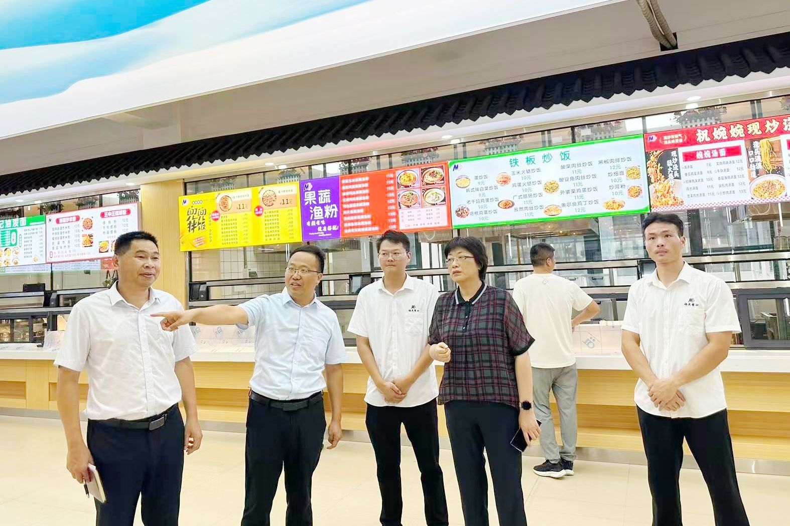 25日下午,在锦绣校区学生食堂,方东玲一行全面检查环境卫生、食品安全、消防安全等工作,查看暑期食堂装修改造和外围电梯安装情况。她强调,要认真学习贯彻习近平总书记关于食品安全“四个最严”的重要指示精神,严格把关采购、储藏、制作、监管等各环节,做实做细服务,建立动态响应机制,确保新学期食品安全卫生、就餐平稳有序。