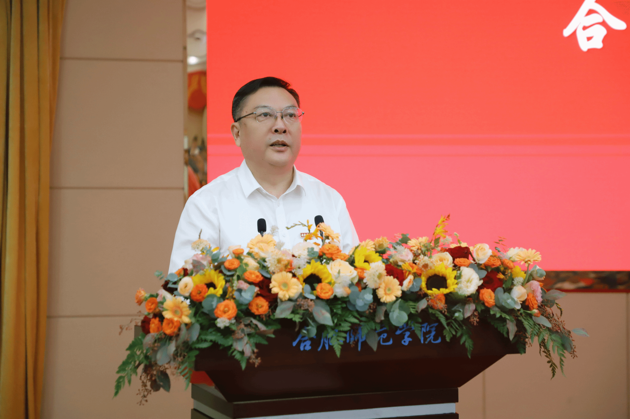 徐成钢代表学院向广大教职工提出了三点希望和要求:一要弘扬教育家精神,勇担教育强省新使命。要不断提高政治站位,将爱国报国的炽热情怀,转化为推动学院事业发展的具体行动,始终坚守理想信念“高地”,始终紧扣立德树人“根本”,始终扛起使命担当“旗帜”,做“行知式好老师”,在平凡的教书育人岗位上,在服务学院改革发展的实践中,展现不平凡的担当与作为。二要锤炼能力本领,激发教师队伍新活力。要大力弘扬教育家精神,持续提高教书育人和科学研究能力,扎根三尺讲台,上好每一堂课,做学生为学、为事、为人的“大先生”。同时将个人成长融入学院发展,以更广视野、更强信心、更实作风,积极投身学院党建与事业发展,团结拼搏、锐意进取,在奉献中成就自我、在奋斗中共享荣光。三要凝聚强大合力,共谱合师发展新篇章。要胸怀大局谋发展,凝心聚力抓发展,赓续传承促发展,自觉将个人工作、前途命运,置于教育强国战略、安徽省经济社会发展大局和高等教育激烈竞争的坐标系中去审视、去谋划、去推进,形成人人想发展、人人谋发展、人人促发展的生动局面。他号召全校教职工深入学习贯彻习近平总书记关于教育的重要论述和习近平总书记考察安徽重要讲话精神,自强不息,追求卓越,以更加坚定的信念、更加饱满的热情、更加扎实的作风投身到学院“更名大学”建设和高质量发展的宏伟事业中,为全面建成特色鲜明的地方应用型高水平大学而努力奋斗!