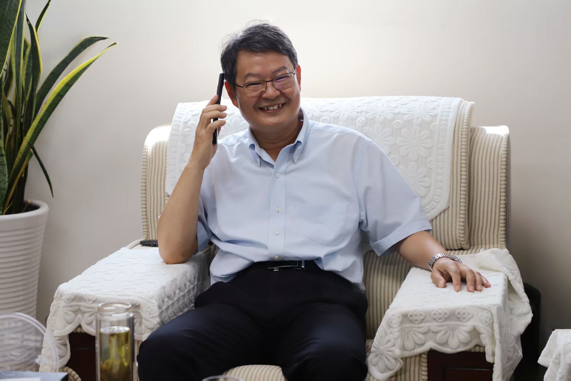 在高鸿钧院士办公室,院党委书记徐成钢通过电话向校友表达诚挚问候,表达了母校对他的牵挂与邀约。高鸿钧院士对母校一行的到来表示热烈欢迎,双方围绕母校回忆、校庆筹备、学院发展等话题展开亲切深入的交谈。