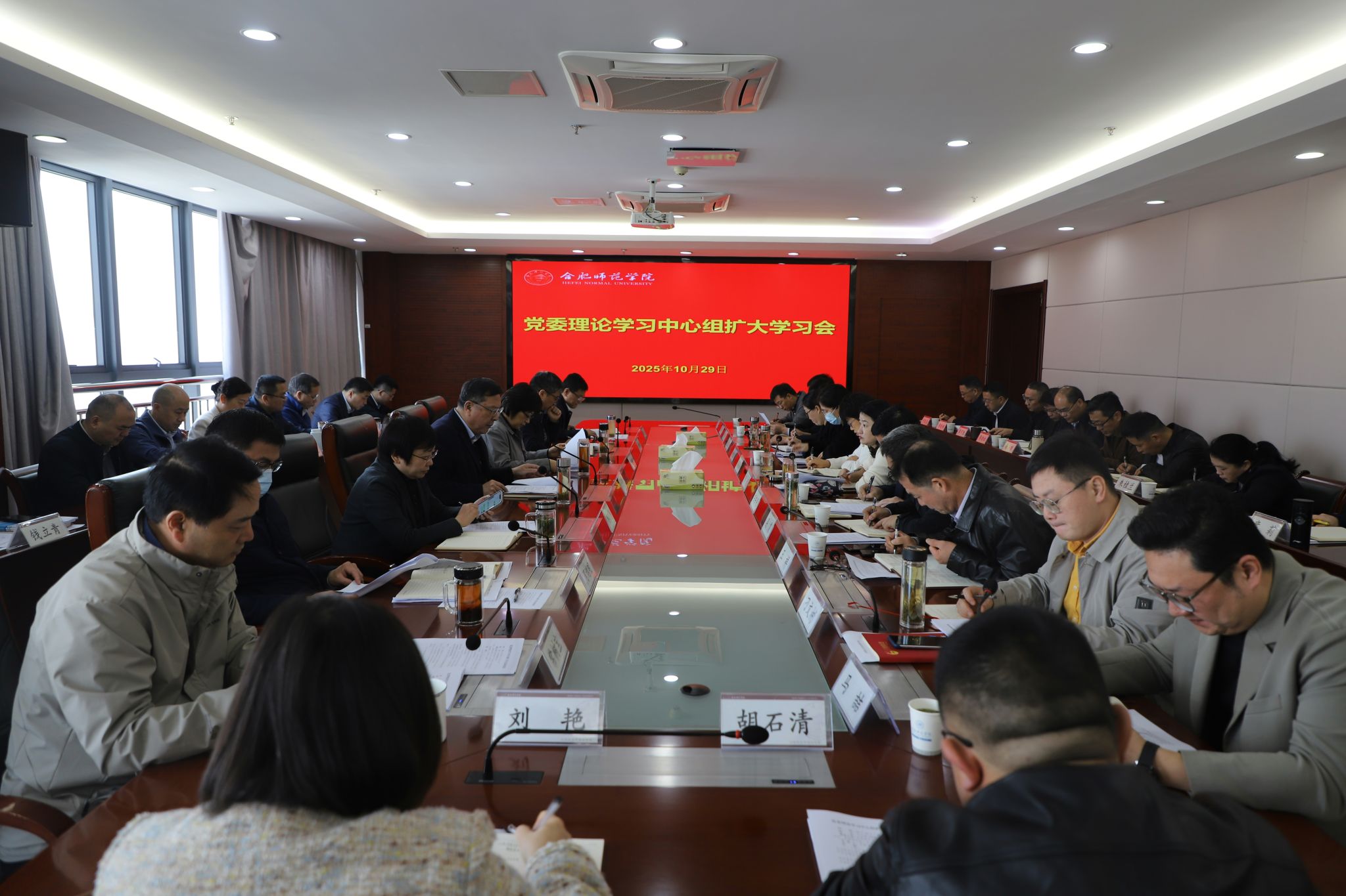 10月29日上午,学院在行知楼2008会议室举行党委理论学习中心组扩大学习会。党委书记徐成钢主持会议并讲话。党委理论学习中心组成员,各院系级党委(党总支、直属党支部)书记,各学院院长,各部门主要负责人参加学习。