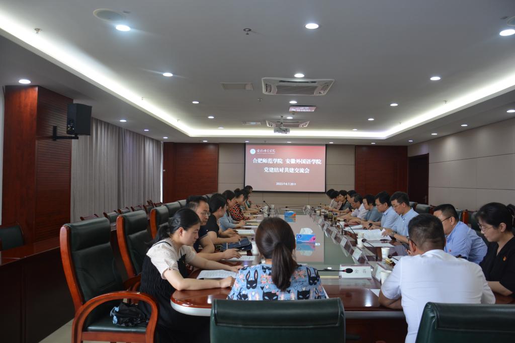 见面会后,我院10名院系级党组织书记与安徽外国语学院基层党组织书记一一对接,就基层党组织建设、党员教育管理、党组织活动开展、党建品牌创建等开展深入交流研讨,相互学习、共同提升。