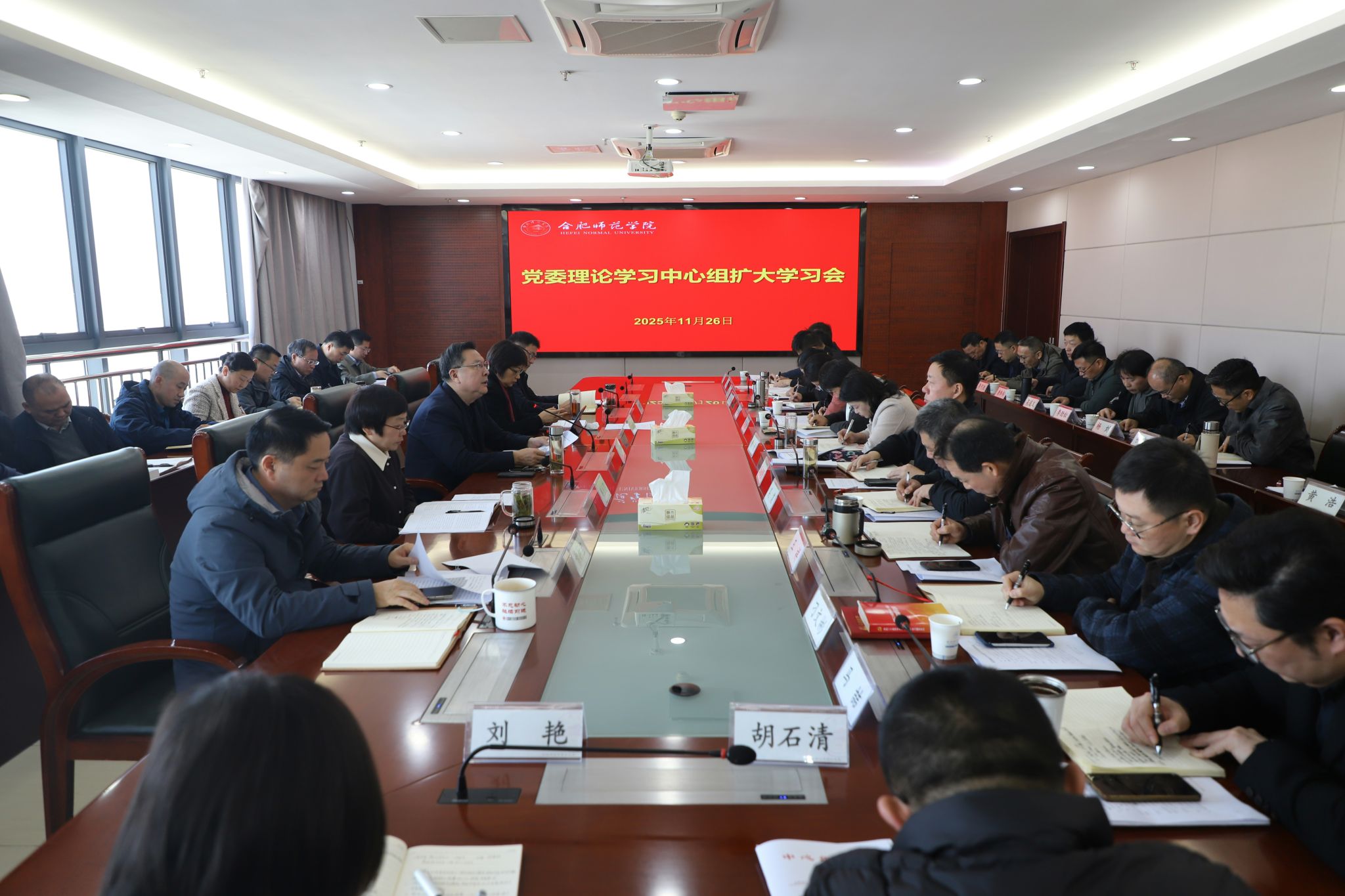 11月26日上午,学院在行知楼2008会议室举行党委理论学习中心组扩大学习会。党委书记徐成钢主持会议并讲话。党委理论学习中心组成员,各院系级党委(党总支、直属党支部)书记,各学院院长,各部门主要负责人参加学习。