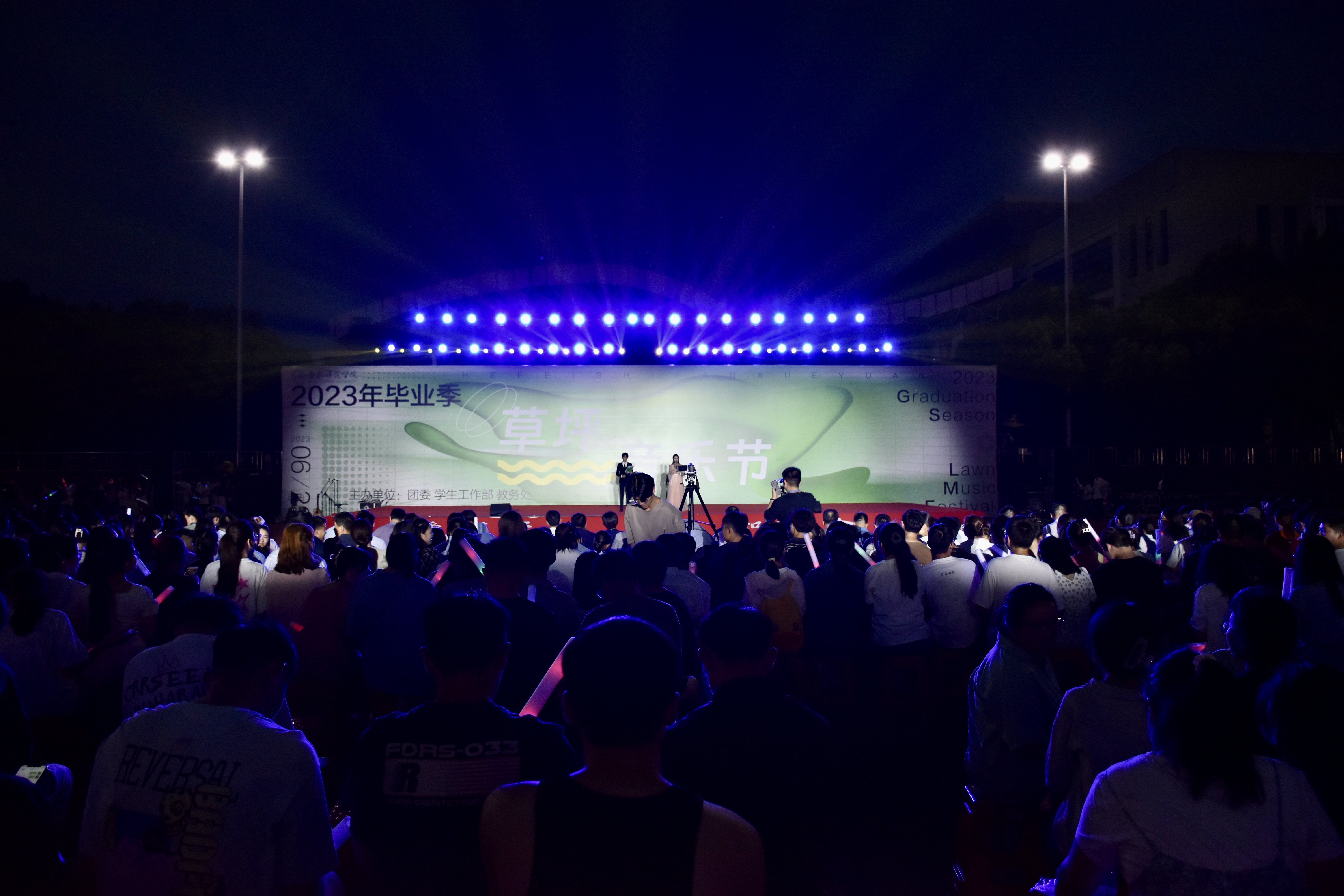 本网讯 6月20日晚,学院在锦绣校区田径运动场举办“季忆留夏·时光有你”2023年毕业季草坪音乐节。活动由院团委、学生工作部、教务处联合举办。院党委书记徐成钢,党委副书记、院长方东玲,党委副书记梁立昌,党委委员、纪委书记、监察专员徐文林,党委委员、副院长周端明,团省委学校部副部长张国栋、汪沫及学校相关部门负责人、各二级学院党组织负责人、辅导员与学生代表1000余人到场观看活动。