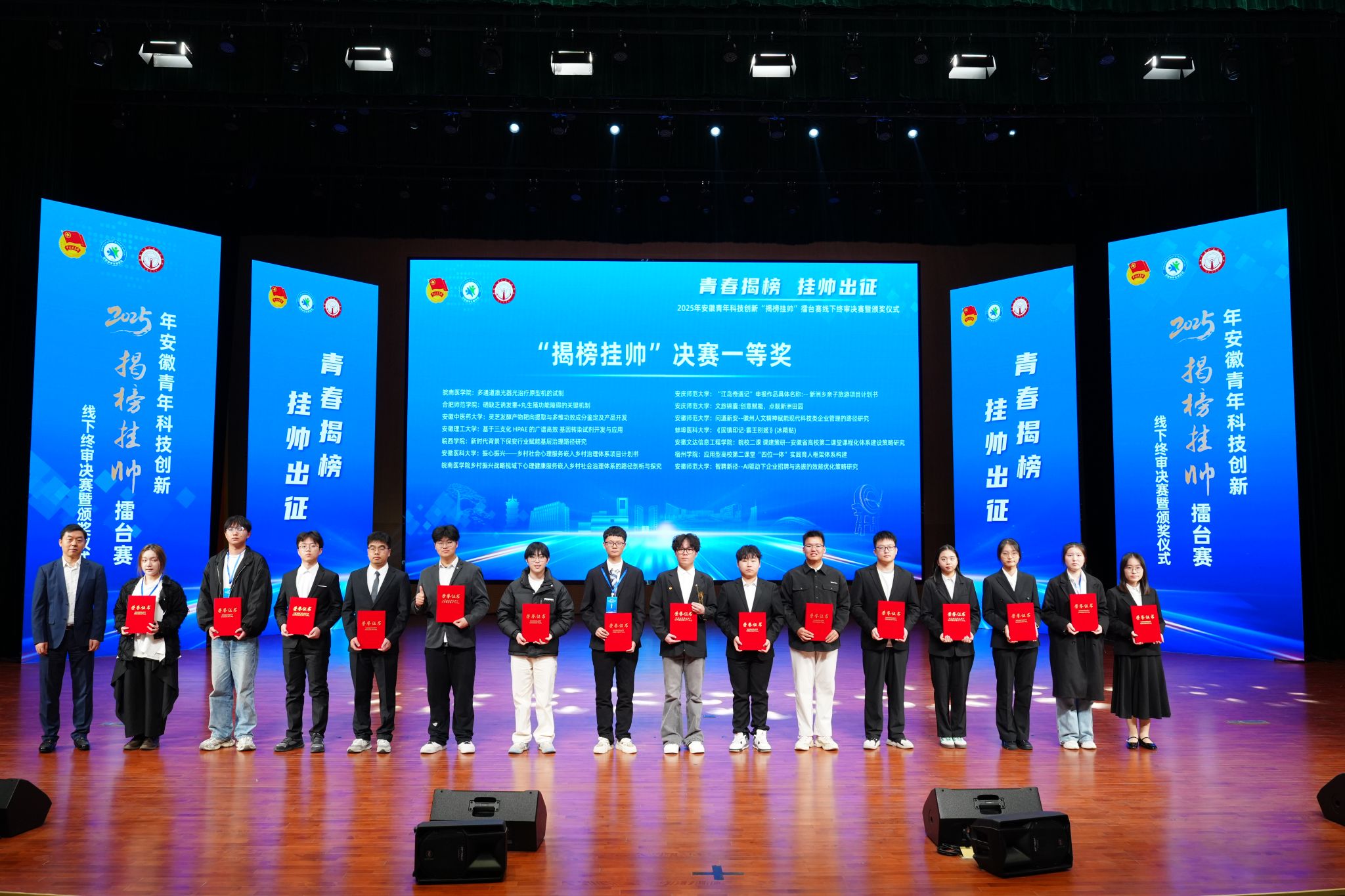 12月7日至8日,由共青团安徽省委员会主办的安徽省“挑战杯”揭榜挂帅专项赛线下终审复赛在安徽交通职业技术学院举行,学院突破性取得省赛一等奖3项(全省共55项),其中包括“擂主”团队2项(全省共25项)。
