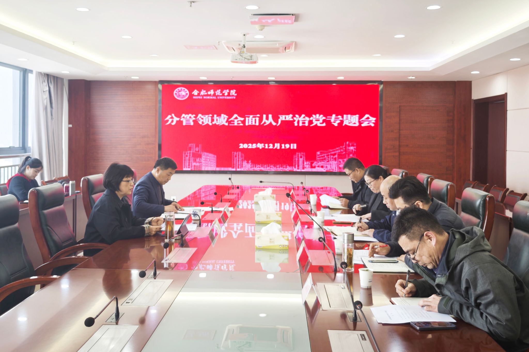 会议重温学习了全面从严治党相关党内法规及“一岗双责”有关要求。审计处、发展规划处、科研处、教育与心理科学学院、合肥基础教育研究院负责人先后对本单位2025年全面从严治党重点任务落实情况、存在的问题,以及下一步措施进行了详细汇报。与会人员还对2026年全面从严治党工作如何开展进行了交流探讨。