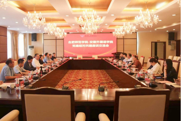 本网讯 为贯彻落实省委教育工委工作要求,5月31日下午,学院与安徽外国语学院召开党建结对共建座谈交流会,院党委书记徐成钢、党委副书记梁立昌,安徽外国语学院党委书记王红月,党委副书记、校长周之虎出席会议。两校党委班子成员、相关职能部门负责人及安徽外国语学院各基层党组织负责人参加会议。会议由安徽外国语学院党委副书记、常务副校长薛照明主持。