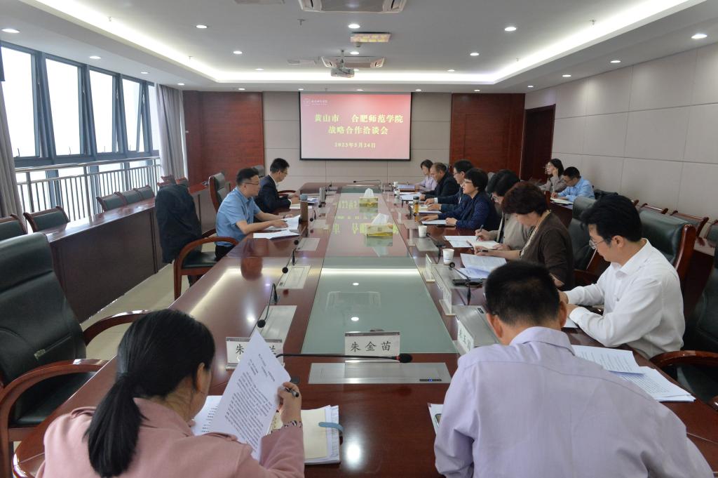 会上,方东玲首先代表学院对黄山市教育局一行表示热烈欢迎,并就学院与黄山市战略合作背景进行了介绍。她指出,黄山市教育底蕴深厚,文旅资源丰富,目前正在加快倾力打造“五个之城”,建设“大黄山”生态型、国际化、世界级休闲度假旅游目的地,发展前景广阔,发展势头强劲。她表示,学院高度重视与黄山市的合作,将秉承“合作共赢、务求实效”的原则,充分发挥学科专业资源优势,积极对接黄山市经济社会发展需求,深化拓展合作领域,实现双方互惠共赢发展。周端明简要介绍了学院历史沿革、基本情况、学科专业特色、人才培养体系及近年来服务地方经济社会发展情况,重点就战略合作协议相关内容的思路和举措进行了说明。