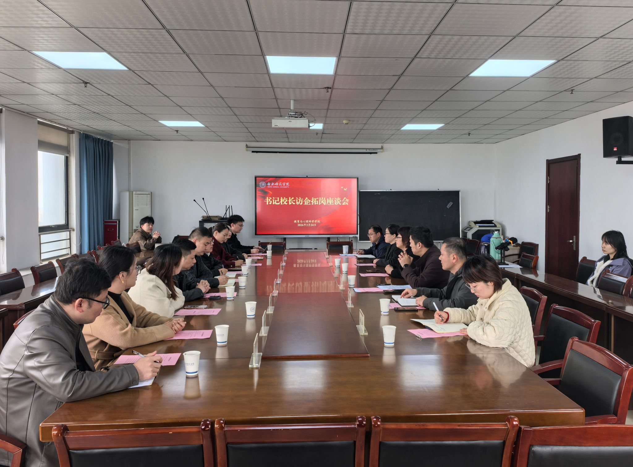 本次访企拓岗座谈会明确了校企合作的精准切入点和实施路径,为后续落实人才供需对接、项目落地奠定了坚实基础。教育与心理科学学院历来高度重视毕业生就业工作,积极以“书记校长访企拓岗促就业专项行动”为抓手,不断深化产教融合,完善协同育人机制,汇聚优质就业资源,为服务学生高质量就业和地方高质量发展贡献智慧与力量。