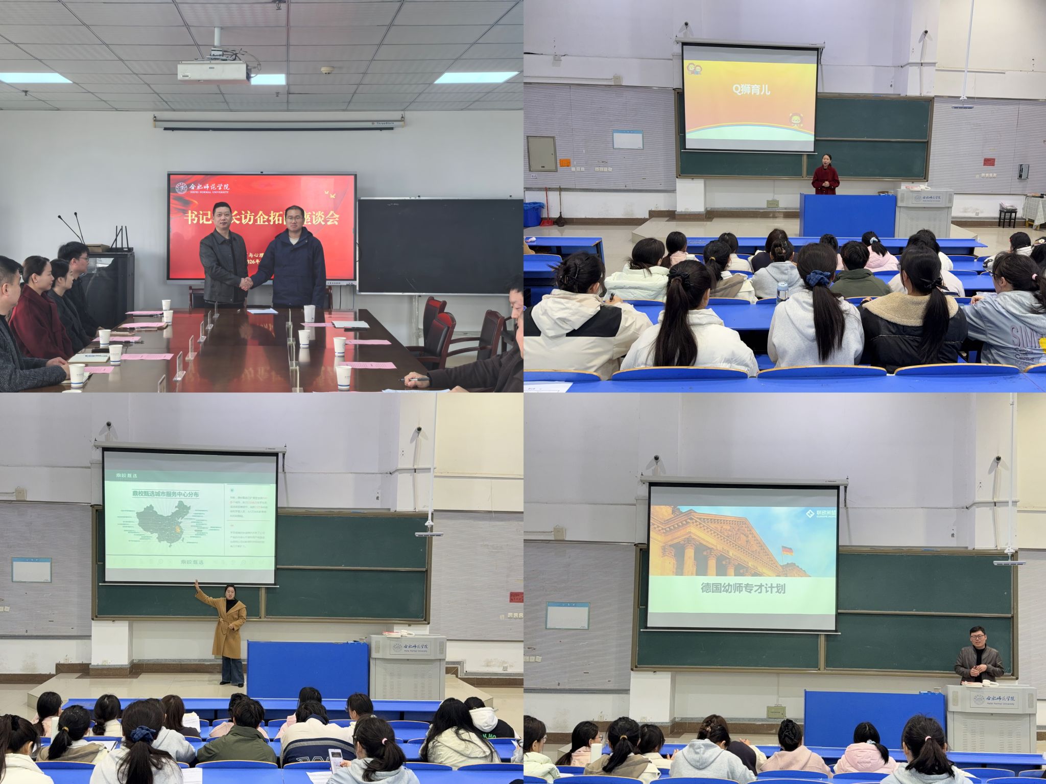 方东玲对用人单位的到访表示欢迎和感谢,简要介绍了学校的发展历程、办学规模、学科专业布局以及教育心理领域核心优势。她指出,我校历史悠久,历经转设、申硕等重要发展节点,成功转型为拥有教育、电子信息等多个硕士点的综合性高校,不仅实现了办学层次的跃升,更提升了服务社会能力。她强调,高校要主动将自身发展置于“教育强国”“健康中国”等国家战略和地方经济社会发展大局中,当前学校与合肥市政府连续五年深度合作,共建基础教育研究院,承担全省基础教育质量监测等工作;学校凭借心理学“高峰学科”和国家级一流专业的雄厚实力,依托安徽省学生心理健康教育管理平台和青少年心理健康与危机智能干预安徽省哲学社会科学重点实验室,构建了“监测-预警-干预”的专业服务体系,为全省大中小学提供全方位心理健康服务。