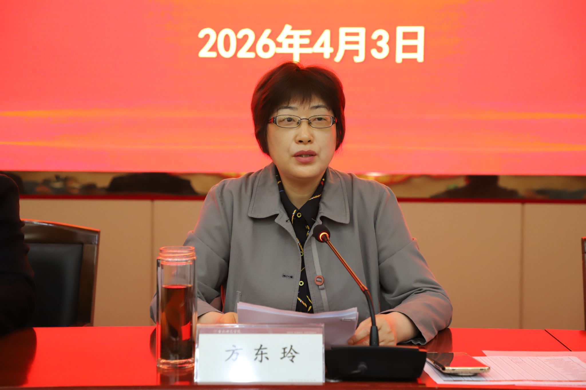 为全面总结2025年就业创业工作成效,表彰先进典型,部署2026年重点工作,学校于4月3日在锦绣校区学术报告厅召开2025年就业创业工作总结表彰大会暨2026年就业创业工作推进会。校党委书记、校长方东玲出席会议并讲话,党委副书记梁立昌,党委委员、副校长、组织部部长赵帮恚,党委委员、副校长李学俊出席会议。党委委员、副校长周端明主持会议。