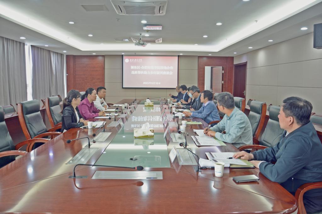 本网讯 为加强校地合作和选派帮扶,5月10日上午,学院与颍东区委组织部在锦绣校区行知楼2008会议室举行乡村振兴座谈交流会。院党委副书记梁立昌出席并主持会议。颍东区委常委、组织部长、统战部长王静一行人员,组织部、工会、人事处、科研处、后勤处负责人,定点帮扶村第一书记参加会议。
