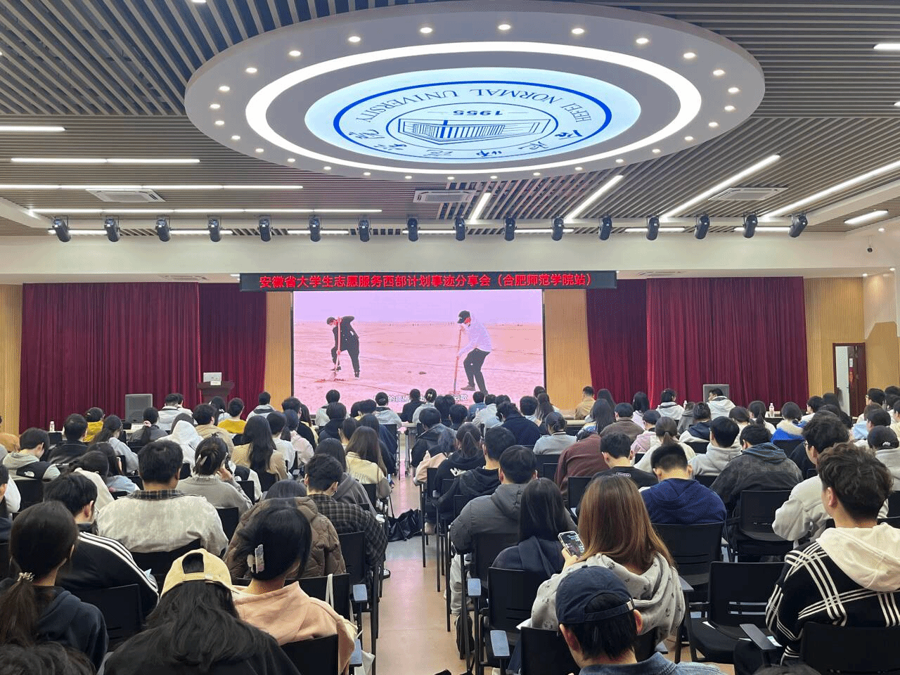 为深入贯彻落实习近平总书记给谢依特小学戍边支教西部计划志愿者服务队队员重要回信精神,引导广大合师学子树立正确的就业观,鼓励更多青年学子投身西部建设、奉献青春力量。4月9日上午,安徽省大学生志愿服务西部计划事迹分享会在锦绣校区大学生活动中心举行。团省委副书记周宇、校党委副书记梁立昌、团省委学校部四级主任科员何苗、省学联驻会主席陈盈,以及我校团委负责人、校团委和二级学院团委教师代表、200余名青年志愿者齐聚现场,共赴一场青春志愿之约。