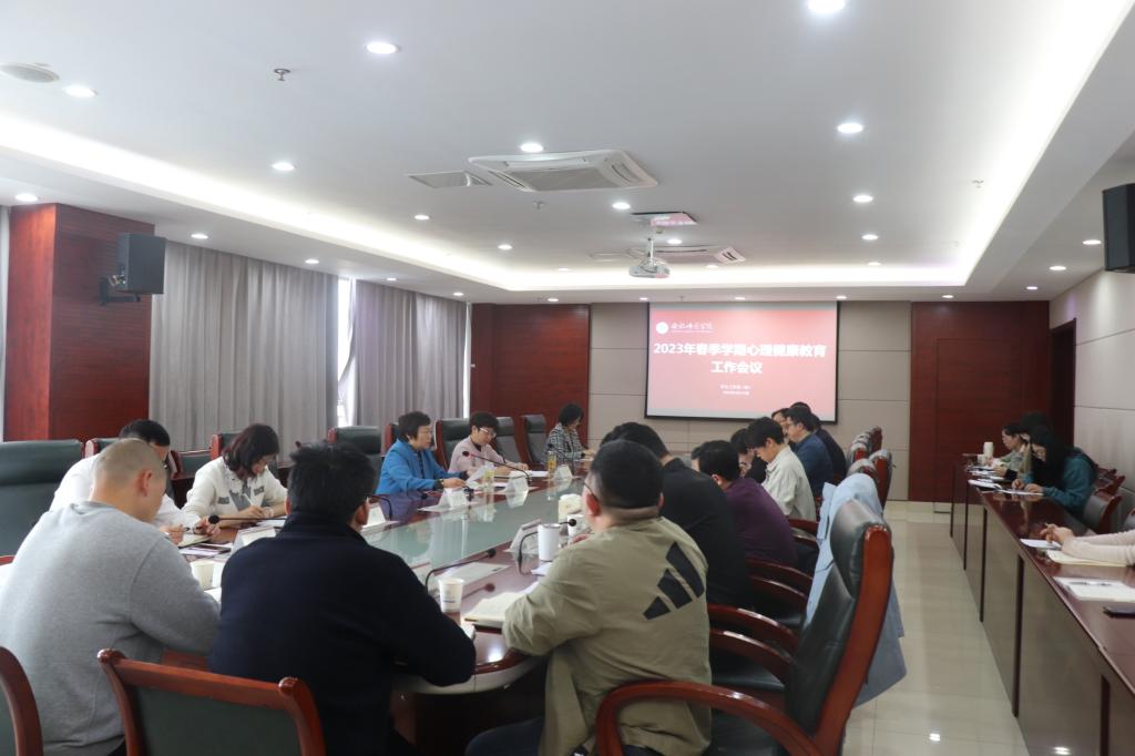 本网讯 为深入学习贯彻党的二十大精神,落实立德树人根本任务,提升心理健康教育工作的针对性和有效性,4月14日下午,学院在锦绣校区行知楼2008会议室召开春季学期心理健康教育工作会议,专题研究部署大学生心理健康教育工作。院党委副书记梁立昌出席会议并讲话,相关部门、二级学院党委负责人参加会议。
