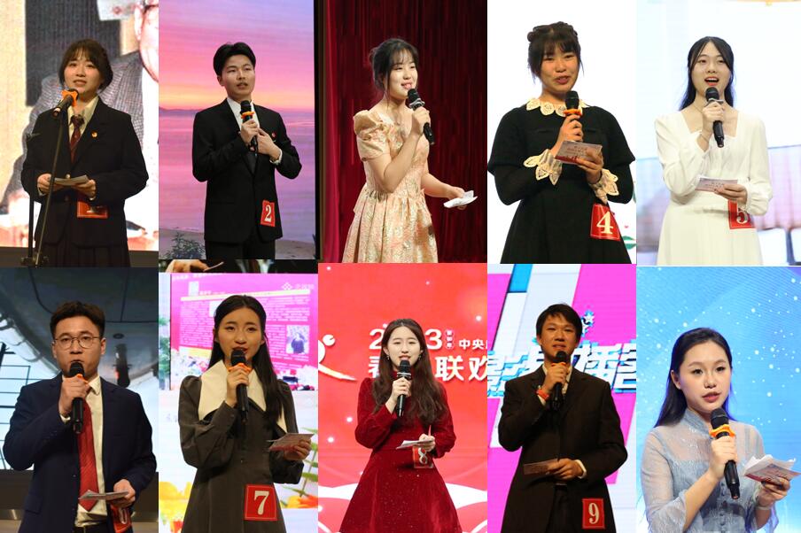 经过初赛和复赛的层层角逐,最终共有10名选手成功进入决赛。本次决赛由组合主持和单人主持两个环节组成,组合主持为两人一组,各组成员以不同的主题自备主持词,进行展示。单人主持由各位选手事先准备主持稿,限时进行舞台表演。