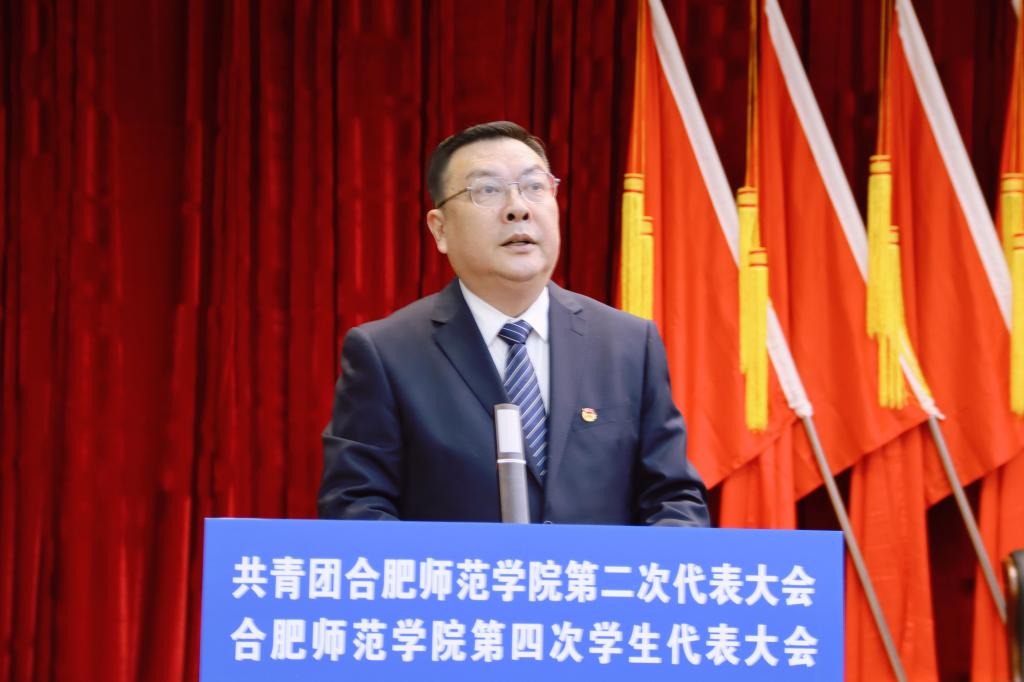 徐成钢代表学院党委向大会的召开表示热烈祝贺,向全院团员青年和广大同学致以亲切问候,充分肯定了各级团学组织在服务学院地方应用型高水平大学建设中取得的显著成绩,并向广大青年学生提出三点希望:一要树立远大理想,坚定不移听党话、跟党走。要坚持用习近平新时代中国特色社会主义思想培根铸魂,持续深入学习贯彻党的二十大精神,把远大理想转化为大学成长目标和将来职业规划,脚踏实地过好每一天、锲而不舍走好每一步,不负青春、不负韶华、不负时代。二要锤炼过硬本领,知行合一勤学习、勇实践。要努力学好科学理论,拓展专业技能,提升综合素质,锤炼过硬本领。要积极参与行知学堂、志愿服务、社会实践,努力经锻炼、长才干、做贡献,让勤奋学习成为青春远航的不竭动力,让增长本领成为青春搏击的强大能量。三要担当时代重任,勇立潮头挑重担、克难关。要增强“请党放心、强国有我”的责任感和使命感,传承和弘扬伟大建党精神和“自强不息,追求卓越”的合师精神,不断增强做中国人的志气、骨气、底气。要积极关心和支持学院改革发展,积极投身社会服务实践,以昂扬向上的精神风貌不断开辟成长发展新天地,勇做新时代新征程的奋进者、开拓者、奉献者。