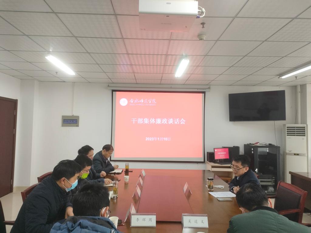 徐文林在廉政谈话中,希望大家不负组织期望和重托,深入体会严以律己的珍贵,以更加奋发有为的精神状态、谦虚谨慎的工作态度和严谨细致的工作作风投入各项工作,再创佳绩。一要旗帜鲜明讲政治,严守政治纪律、政治规矩。把学习宣传贯彻党的二十大精神作为当前和今后一个时期首要政治任务,做到学深悟透、融会贯通。增强政治定力,强化政治担当,以实际行动捍卫“两个确立”,践行“两个维护”。在重大问题上保持头脑清醒,在关键时刻经受住考验,始终做政治上的明白人、老实人,确保政治素质过硬。二要持之以恒严要求,坚持廉洁自律、克己奉公。深入学习贯彻习近平总书记在二十届中央纪委二次全会上的重要讲话精神,增强纪律意识、规矩意识,把纪律作为约束自身行为的标准和遵循,摆在更加突出位置。自觉用党章党规党纪约束一言一行,进一步养成在受监督和约束的环境中工作生活的习惯。坚持公正用权、谨慎用权、依法用权。带头建设和弘扬新时代良好家风。三要担当负责敢亮剑,提升斗争精神、斗争本领。聚焦学院事业发展,保持争优创先的进取心、敢于斗争的勇气、一抓到底的韧劲和时时放不下的责任感,团结广大干部、师生迎难而上,为建设地方应用型高水平大学作出新贡献。
