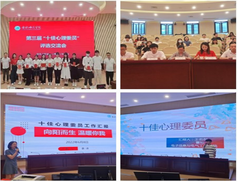 搭建心理委员交流与学习平台。组织“十佳心理委员”评选与经验交流会,参评心理委员以PPT汇报的形式,展示总结取得的工作成绩和工作成果,分享服务同学、服务班级的宝贵经验。本年度共评选43名优秀心理委员,10名十佳心理委员。
