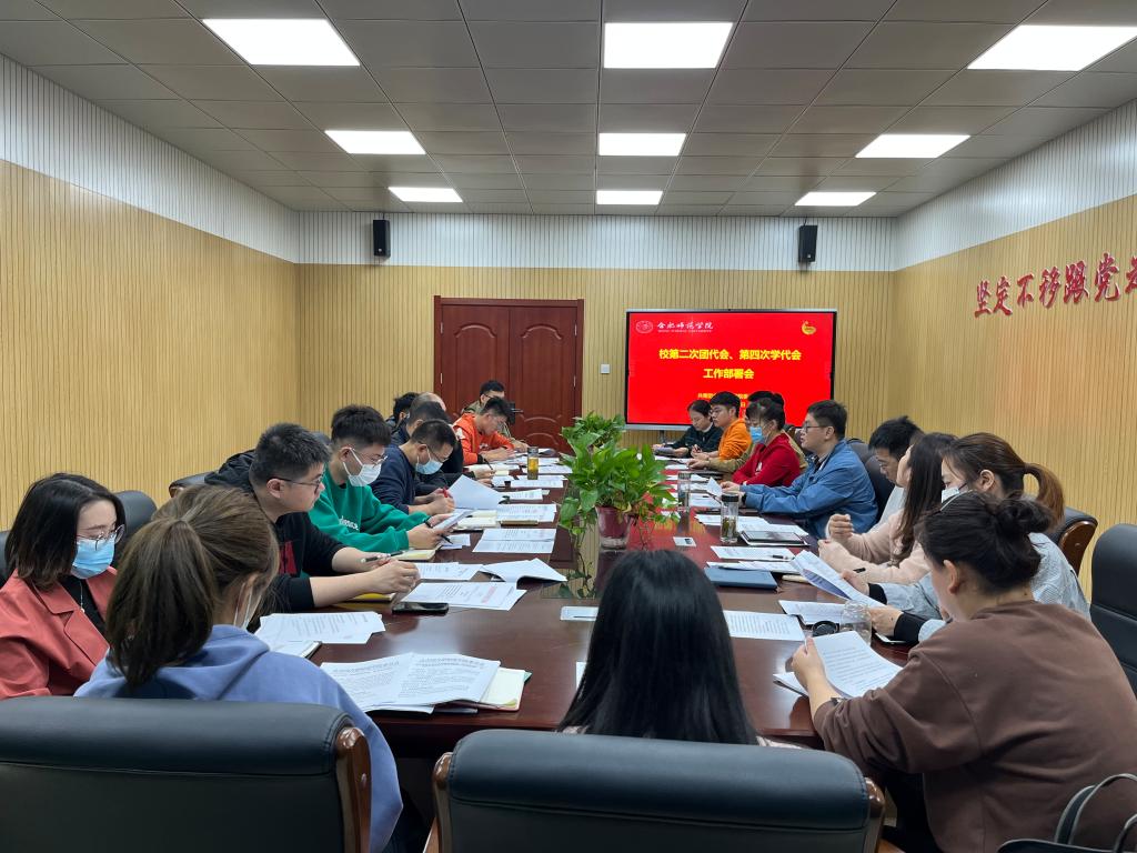 本网讯 11月9日上午,学院在锦绣校区共青之家会议室召开院第二次团代会暨第四次学代会(以下简称团学代会)工作部署会。大会筹备工作领导组办公室和各项目组负责人,各二级学院分团委书记参加会议。