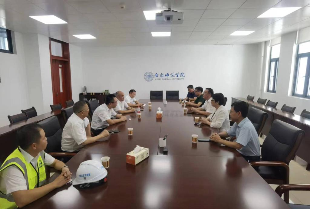 封顶仪式结束后,徐成钢、方东玲、华银峰在铭传楼会议室会见了中铁北京局华东指挥部党工委副书记、副指挥长孙勇一行,就进一步科学管理、加快进度、严把质量、确保安全等提出明确要求。(滨湖校区综合管理办公室、基建办)