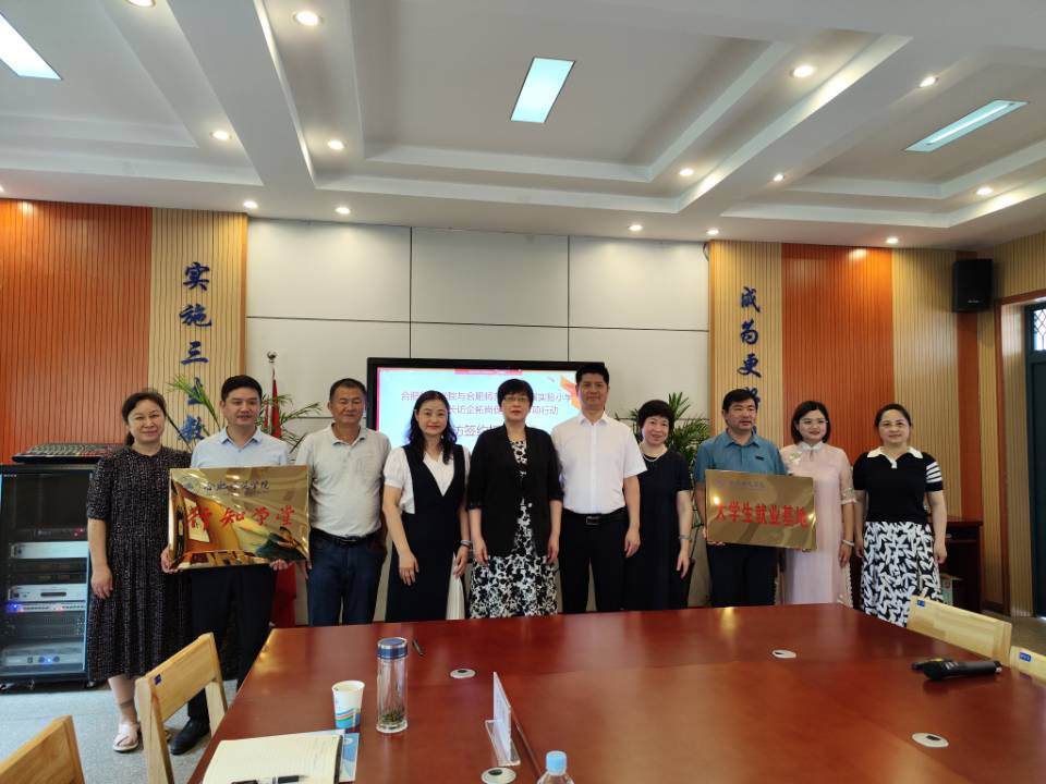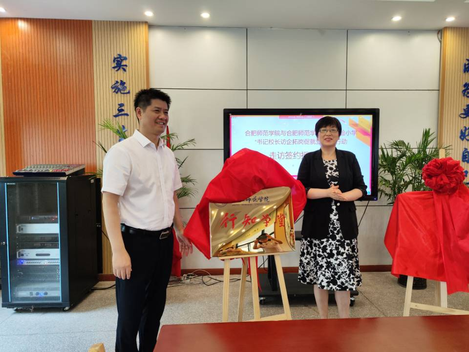在签约授牌仪式上,方东玲、杨会谦为beat365唯一官方网站附属实验小学大学生就业基地和行知学堂揭牌,李群、彭正签署了合作协议。(教师教育学院:王磊)