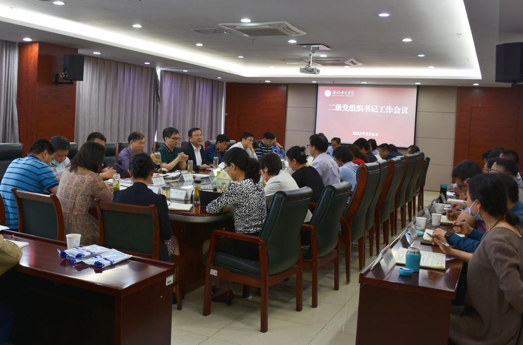 本网讯 5月6日上午,学院在锦绣校区行知楼第二会议室召开二级党组织书记工作会议,部署近期基层党建重点工作。院党委书记徐成钢出席会议并讲话,各二级党组织书记、专职副书记,组织部、办公室、纪委办、宣传部、学生工作部、保卫处等部门负责人参加会议。会议由党委副书记吴昕春主持。