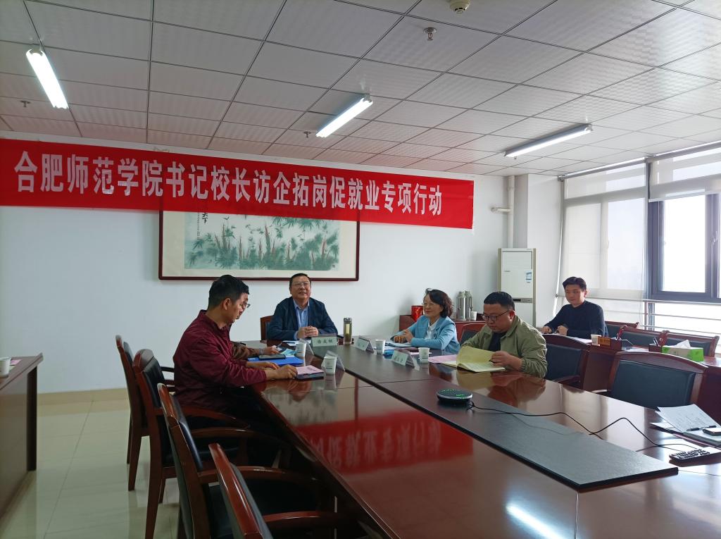 徐成钢代表学院党委对公司长期以来关心支持我校就业工作、悉心关注校友成长发展表示感谢,系统介绍了我校历史沿革、学科专业、人才培养等基本情况,高度肯定了双方的合作成效,并提出三点希望。一是立足新的起点,强化交流合作,共同开创校企合作的新篇章;二是激发新动能,推动优质发展,找准人才培养与服务地方发展的契合点;三是踏上新征程,踔厉奋发向前,引导更多青年投身科技兴邦、实业报国,在青春赛道上跑出新速度。徐成钢强调,要进一步抢抓机遇、乘势而上,大力推动合作成果落地见效,加快高质量人才培养步伐,为服务安徽“三地一区”建设提供更加强有力的智力支持和人才保障。