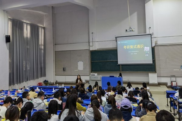 本网讯 2022年研究生入学考试复试在即,为更精准指导学生掌握相关复试技巧,3月9日下午,学院在锦绣校区逸夫楼西阶一教室举办考研复试专题指导讲座。来自各二级学院共计200余名学生现场聆听了讲座。